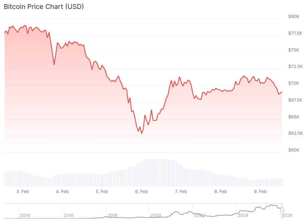 Bitcoin regained the $70,000 level on February 9 after a sharp correction pushed prices below $60,000 last week. The leading cryptocurrency traded around $70,800 as markets showed signs of stabilization.