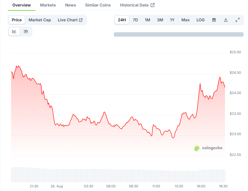 Despite the filing, Chainlink’s price has faced challenges in recent days. As of today, the price of LINK stands at $24.27, reflecting a 1.20% decline over the last 24 hours and a 1.32% drop over the past week.