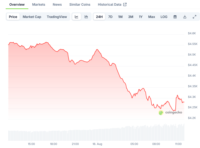 The post Ethereum (ETH) Price: Market Faces Resistance at $4,500 After Recent Pullback appeared first on Blockonomi.