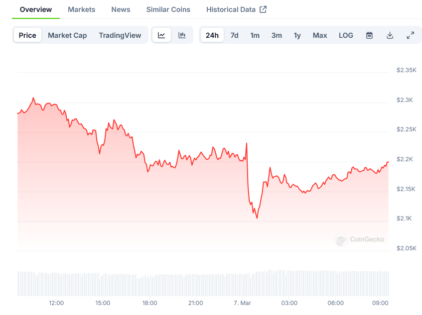Martinez notes that as long as Ethereum maintains support above $2,200, the chances of a rebound increase. Currently, ETH trades around $2,170, with a market capitalization of $261 billion.